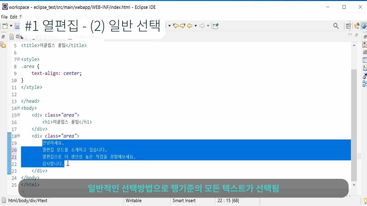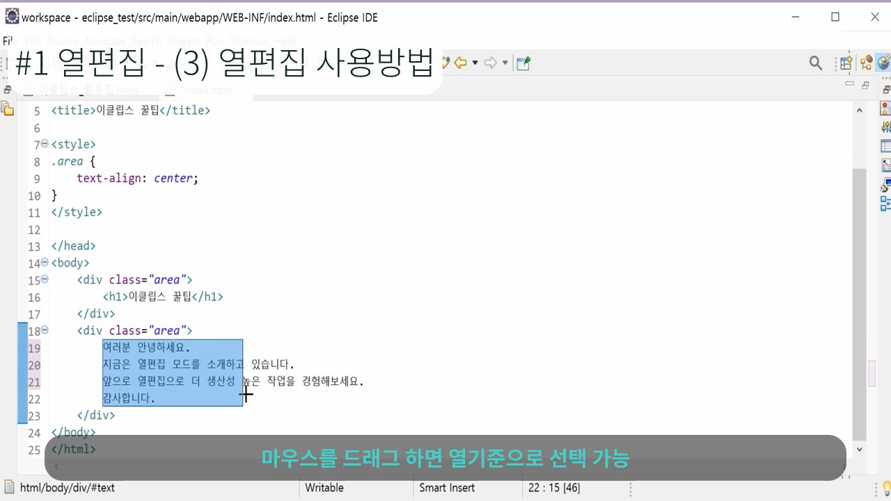 이클립스를 사용하고 있다면 이클립스에서 열편집 하는 방법도 알아두면 좋아요