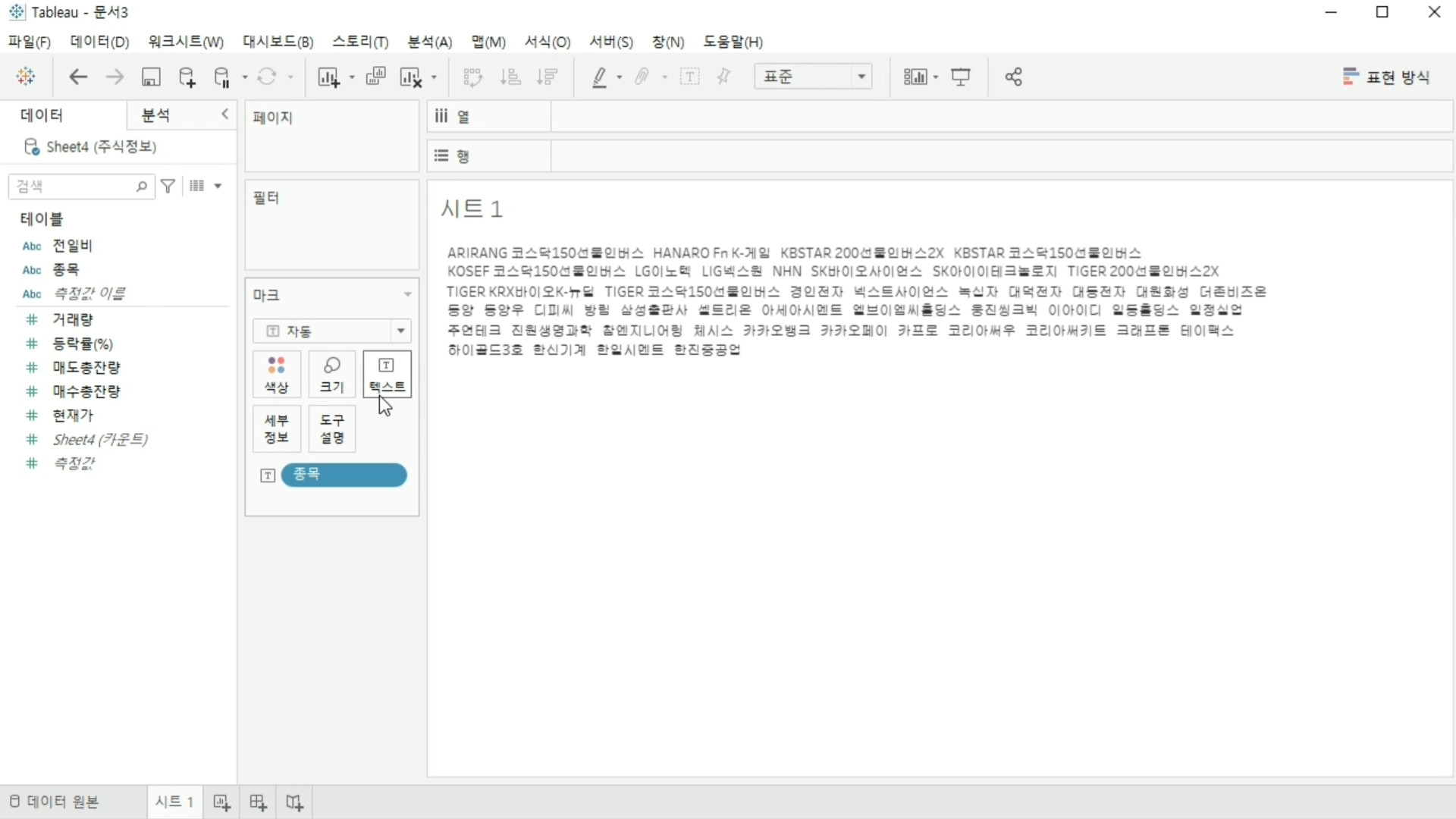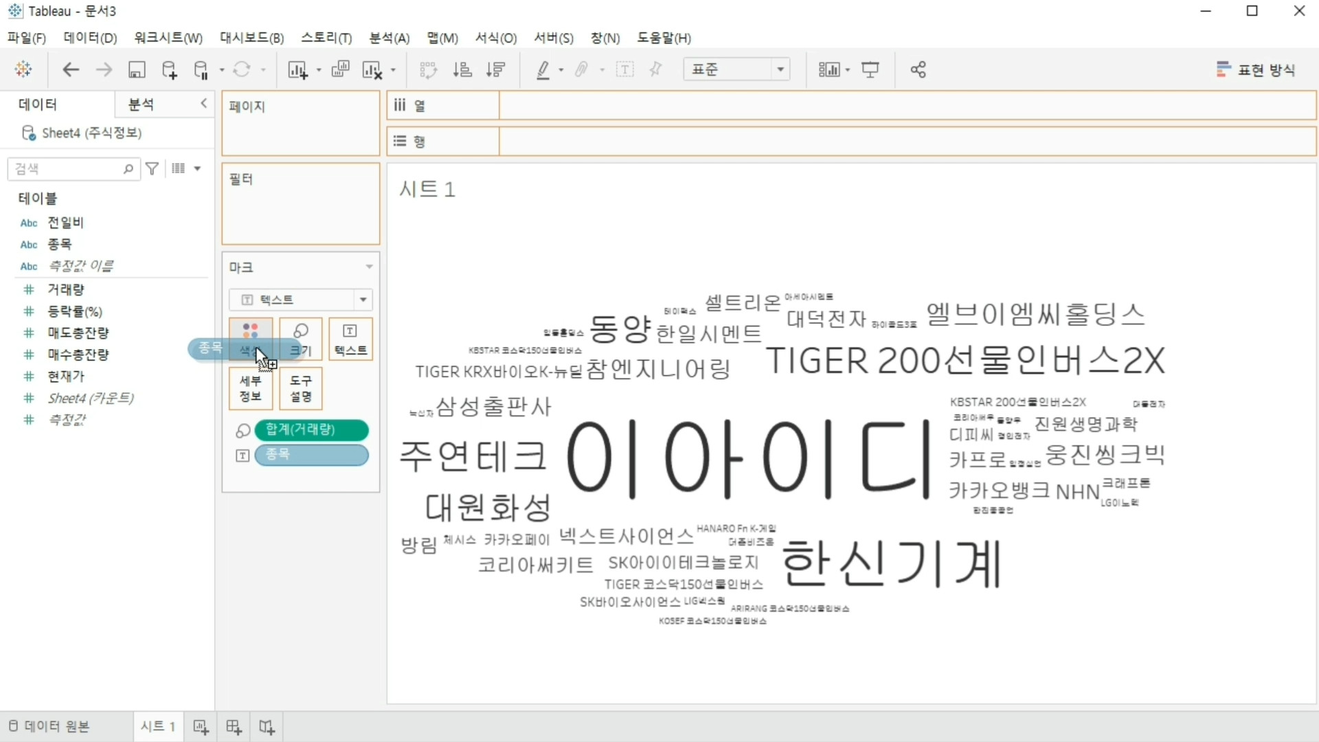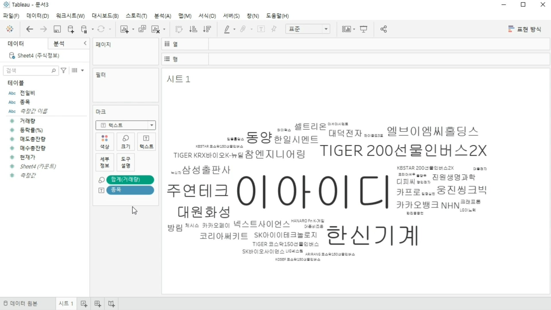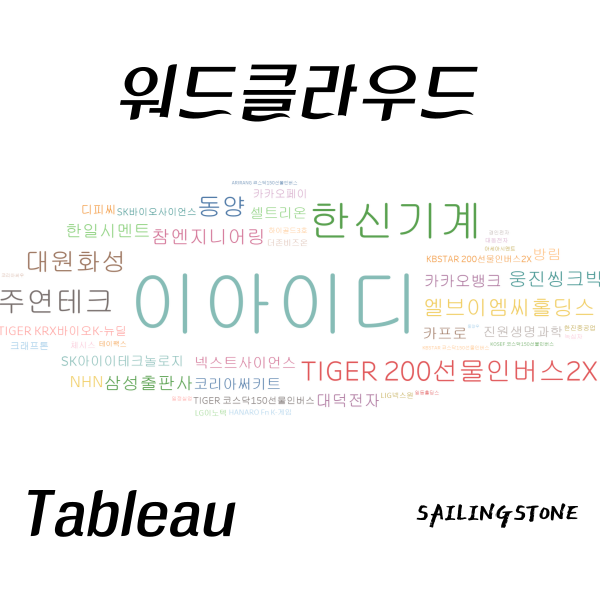 일단 종목과 거래량을 기준으로 워드 클라우드를 만들 겁니다