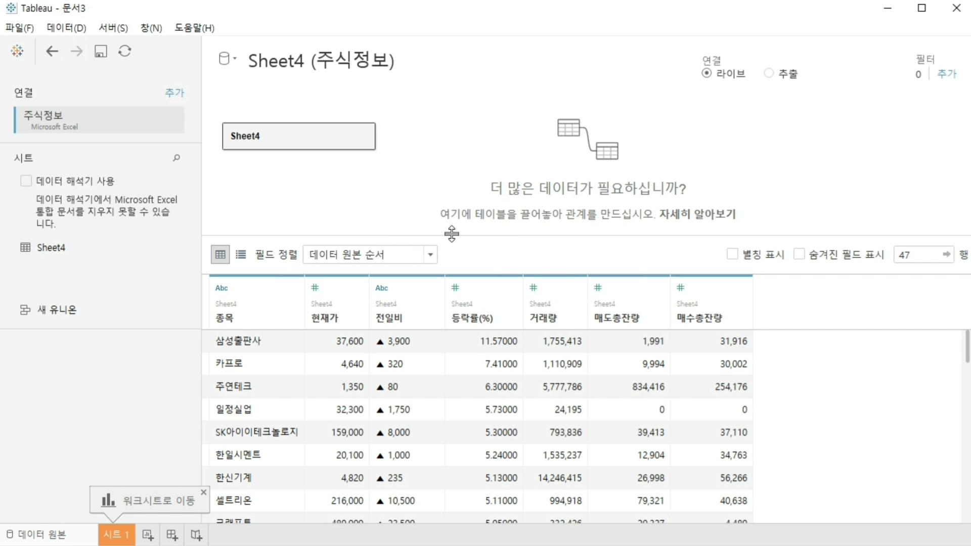 파일에 연결을 눌러서 엑셀 파일을 불러옵니다.