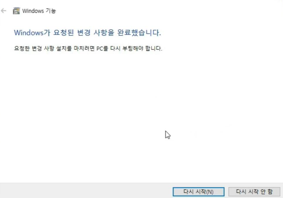 기다리다 보면 컴퓨터를 다시 시작해야 한다는 표시가 나와요.