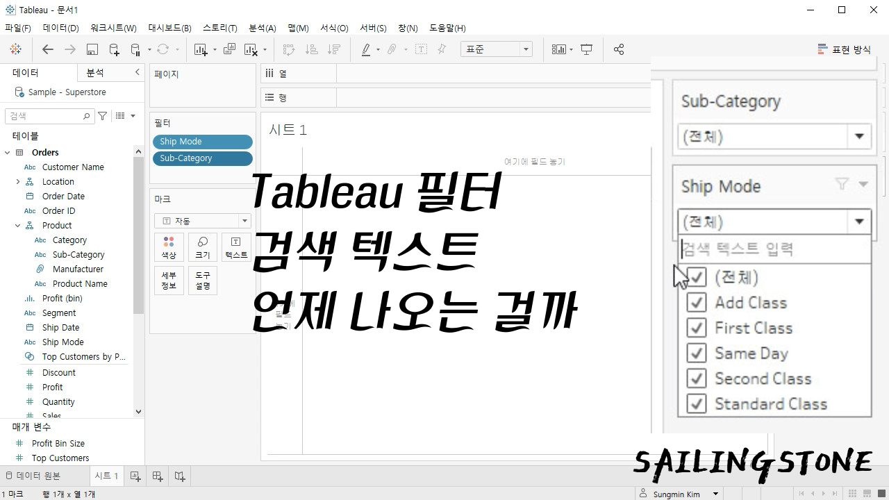 Tableau에서 필터를 적용하면 텍스트 검색도 가능해서 편리한데요